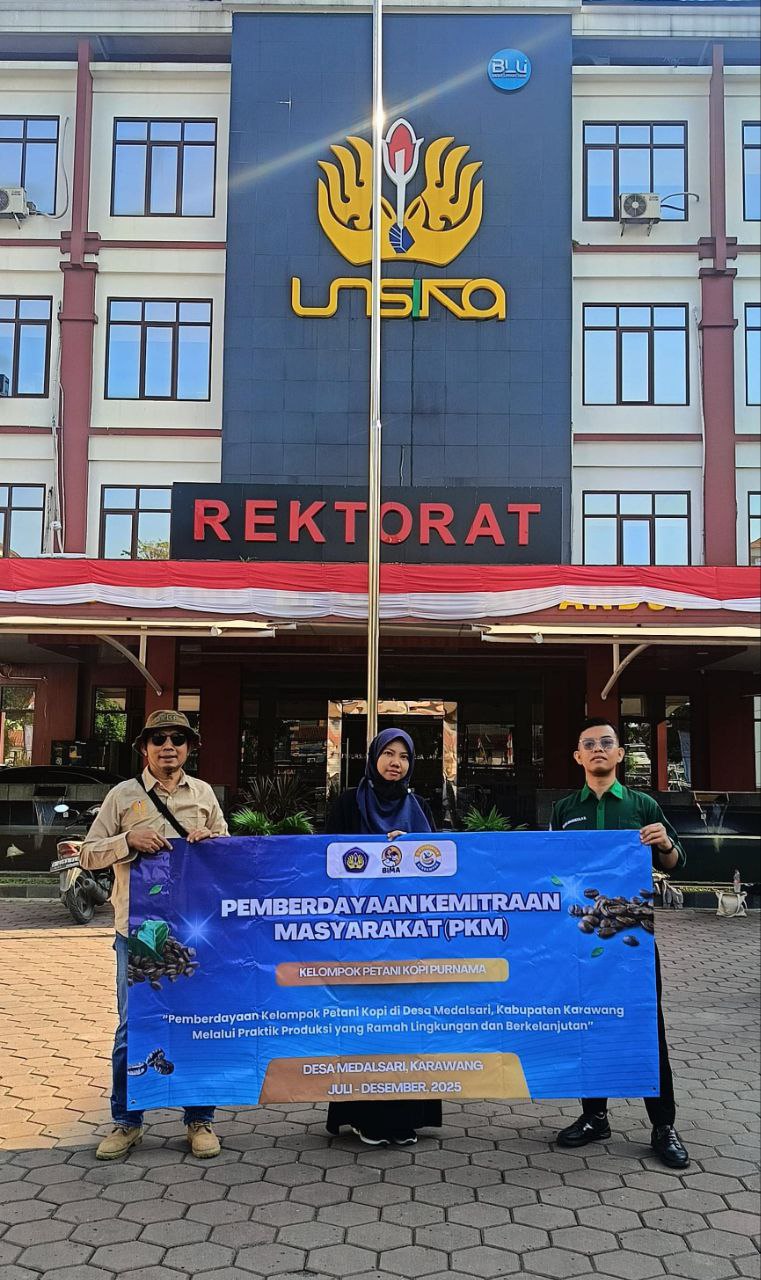 KARAWANG – JABARINAJA.COM – Melalui tim dosen dan mahasiswa Universitas Singaperbangsa Karawang (Unsika) melaksanakan program pengabdian masyarakat dengan tema Pemberdayaan Petani Kopi di Desa Medalsari melalui Produksi yang Ramah Lingkungan dan Berkelanjutan (16 Agustus 2025). Kegiatan ini berfokus pada peningkatan kapasitas Kelompok Petani Kopi Purnama yang dipimpin oleh Bapak Dimyati, dengan tujuan mendorong praktik budidaya kopi berkelanjutan sekaligus memperkuat strategi pemasaran produk.
